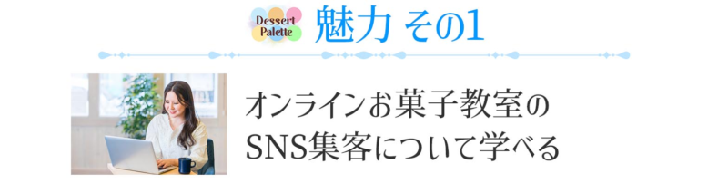 オンラインお菓子教室を運営するにあたって、大きな壁となるSNS集客のコツをチャンネル登録者2.4万人の人気Youtuberの先生が直接伝授します。集客サポート付きなので集客の悩みを一人で抱え込まなくて大丈夫です。